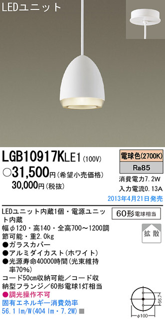 Panasonic LED ¥Ú¥ó¥À¥ó¥È LGB10917KLE1