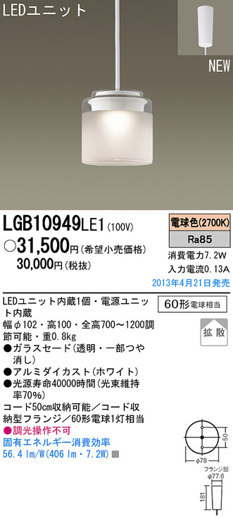 Panasonic LED ¥Ú¥ó¥À¥ó¥È LGB10949LE1