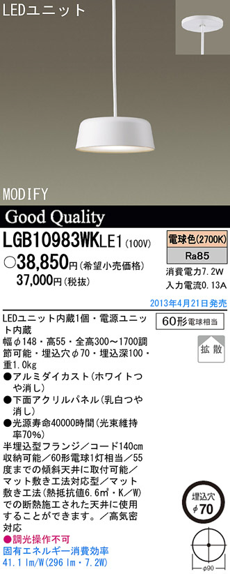 Panasonic LED ¥Ú¥ó¥À¥ó¥È LGB10983WKLE1