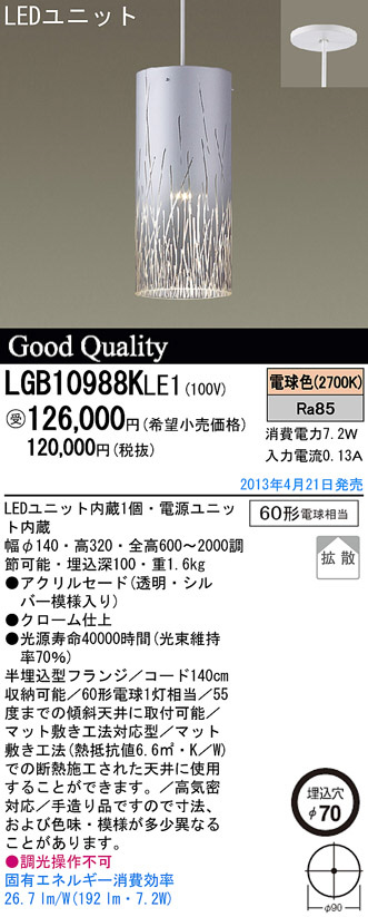 Panasonic LED ¥Ú¥ó¥À¥ó¥È LGB10988KLE1
