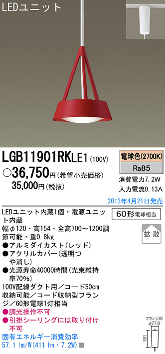 Panasonic LED ¥Ú¥ó¥À¥ó¥È LGB11901RKLE1
