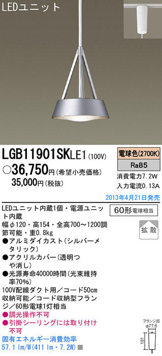 Panasonic LED ¥Ú¥ó¥À¥ó¥È LGB11901SKLE1