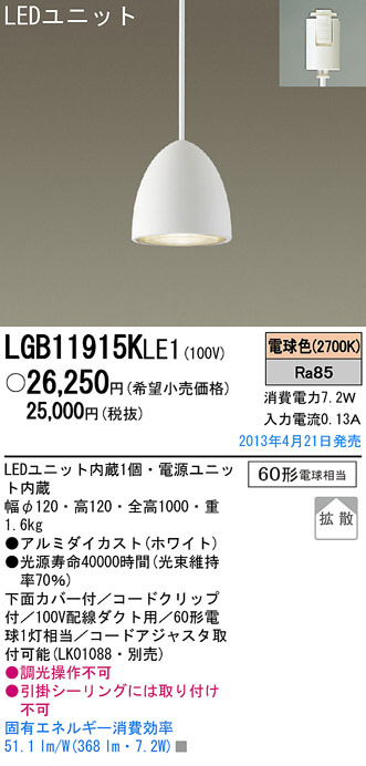 Panasonic LED ¥Ú¥ó¥À¥ó¥È LGB11915KLE1