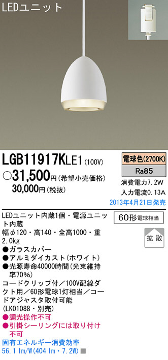 Panasonic LED ¥Ú¥ó¥À¥ó¥È LGB11917KLE1