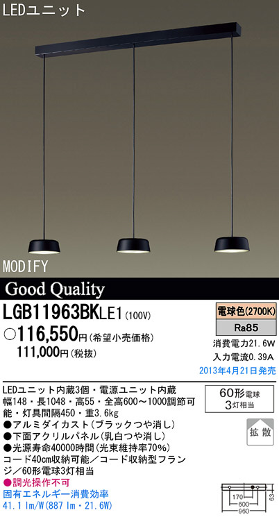 Panasonic LED ¥Ú¥ó¥À¥ó¥È LGB11963BKLE1