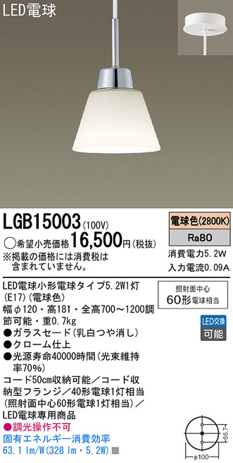 Panasonic LED ¥Ú¥ó¥À¥ó¥È¥é¥¤¥È LGB15003