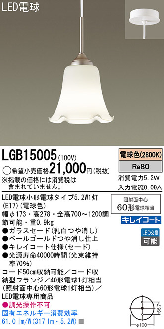 Panasonic LED ¥Ú¥ó¥À¥ó¥È¥é¥¤¥È LGB15005