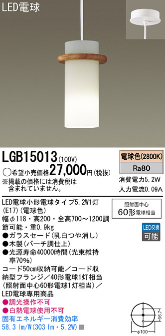 Panasonic LED ¥Ú¥ó¥À¥ó¥È¥é¥¤¥È LGB15013