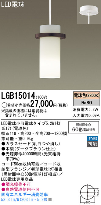 Panasonic LED ¥Ú¥ó¥À¥ó¥È¥é¥¤¥È LGB15014