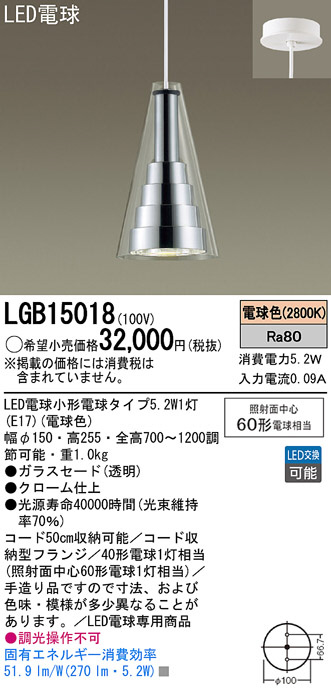 Panasonic LED ¥Ú¥ó¥À¥ó¥È¥é¥¤¥È LGB15018