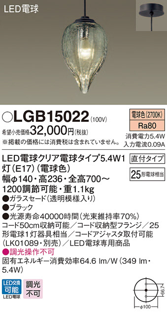 Panasonic LED ¥Ú¥ó¥À¥ó¥È¥é¥¤¥È LGB15022