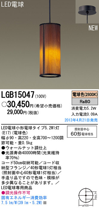 Panasonic LED ¥Ú¥ó¥À¥ó¥È LGB15047