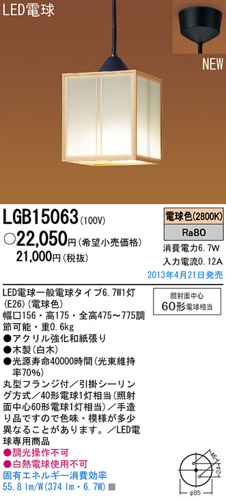 Panasonic LED ¥Ú¥ó¥À¥ó¥È ÏÂÉ÷¾ÈÌÀ LGB15063