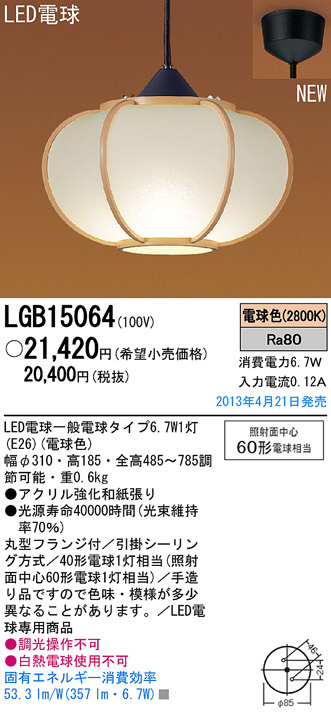 Panasonic LED ¥Ú¥ó¥À¥ó¥È ÏÂÉ÷¾ÈÌÀ LGB15064