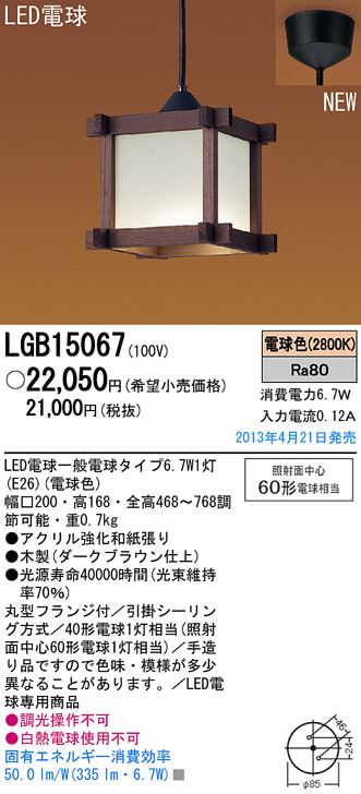 Panasonic LED ¥Ú¥ó¥À¥ó¥È ÏÂÉ÷¾ÈÌÀ LGB15067