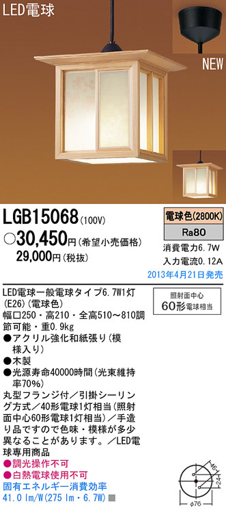 Panasonic LED ¥Ú¥ó¥À¥ó¥È ÏÂÉ÷¾ÈÌÀ LGB15068