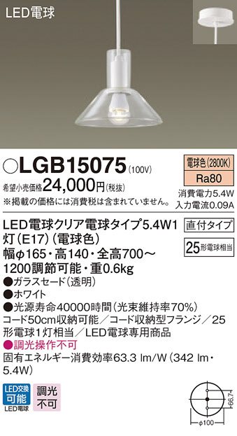 Panasonic LED ¥Ú¥ó¥À¥ó¥È¥é¥¤¥È LGB15075