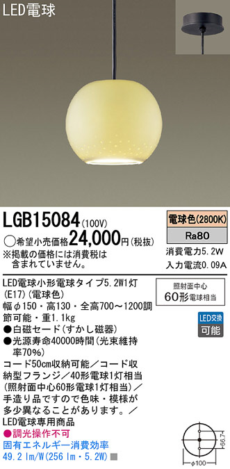 Panasonic LED ¥Ú¥ó¥À¥ó¥È¥é¥¤¥È LGB15084