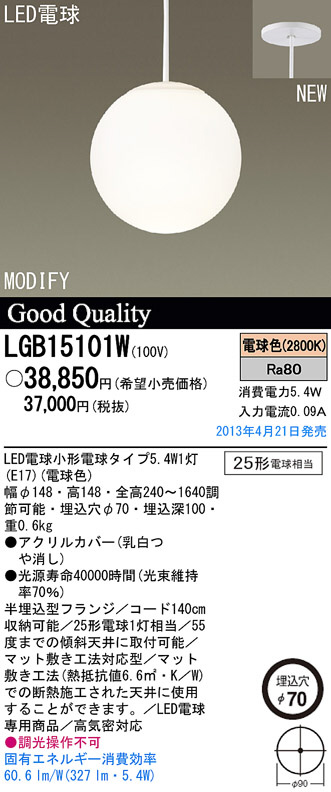 Panasonic LED ¥Ú¥ó¥À¥ó¥È LGB15101W