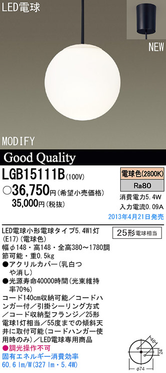 Panasonic LED ¥Ú¥ó¥À¥ó¥È LGB15111B
