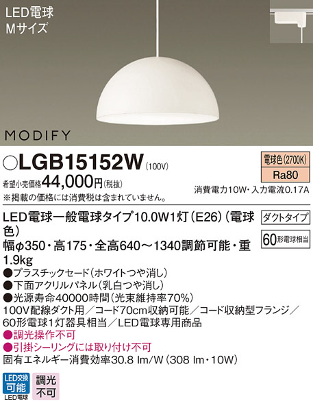 Panasonic LED ¥Ú¥ó¥À¥ó¥È¥é¥¤¥È LGB15152W