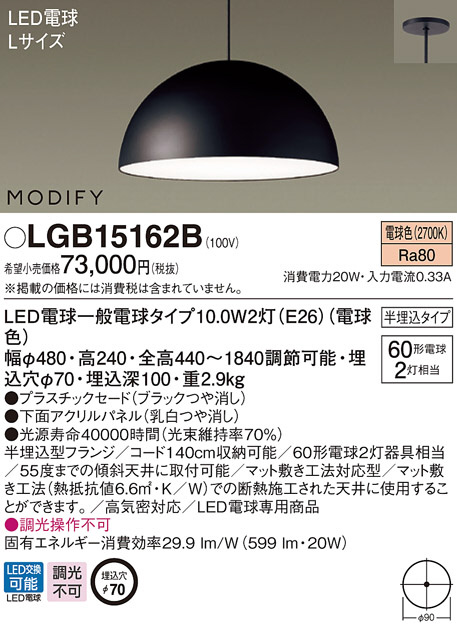 Panasonic LED ¥Ú¥ó¥À¥ó¥È¥é¥¤¥È LGB15162B