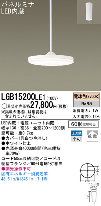 Panasonic LED ¥Ú¥ó¥À¥ó¥È LGB15200LE1