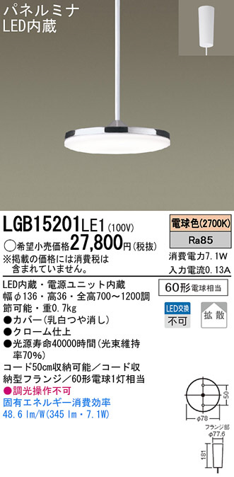 Panasonic LED ¥Ú¥ó¥À¥ó¥È LGB15201LE1