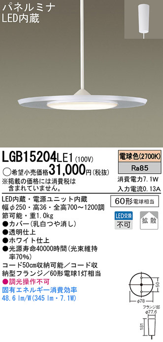 Panasonic LED ¥Ú¥ó¥À¥ó¥È LGB15204LE1