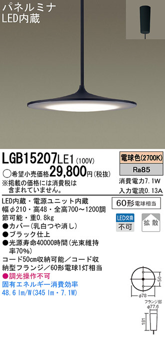 Panasonic LED ¥Ú¥ó¥À¥ó¥È LGB15207LE1