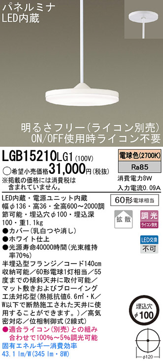 Panasonic LED ¥Ú¥ó¥À¥ó¥È LGB15210LG1