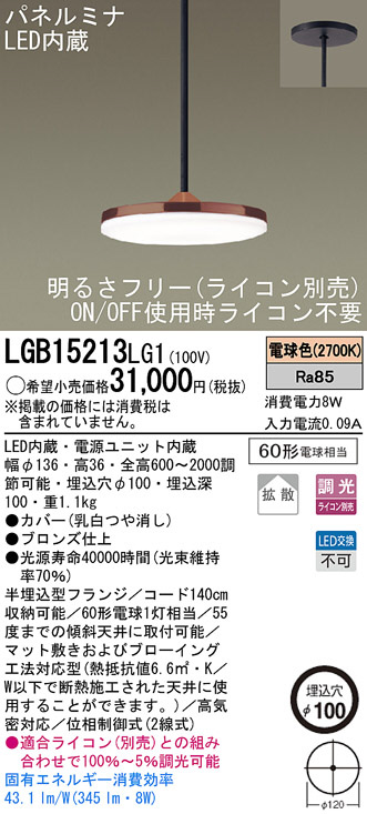 Panasonic LED ¥Ú¥ó¥À¥ó¥È LGB15213LG1