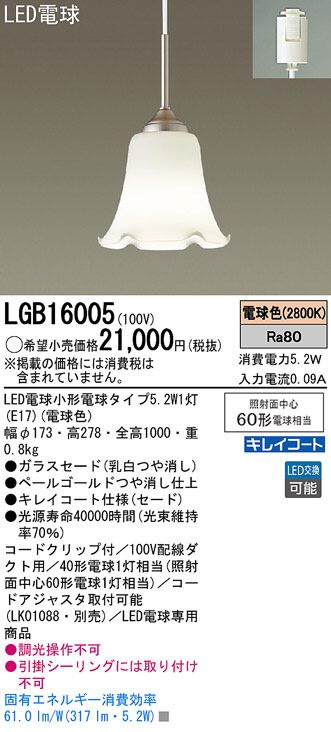 Panasonic LED ¥Ú¥ó¥À¥ó¥È¥é¥¤¥È LGB16005