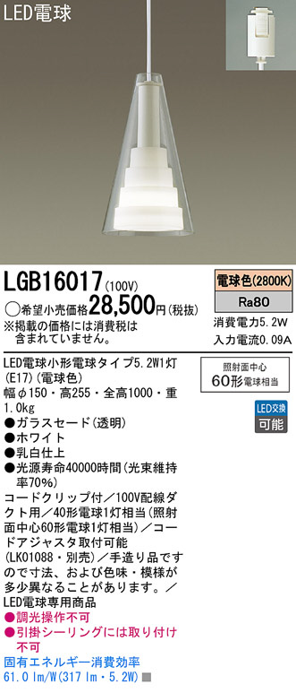 Panasonic LED ¥Ú¥ó¥À¥ó¥È¥é¥¤¥È LGB16017