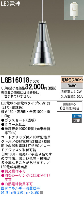 Panasonic LED ¥Ú¥ó¥À¥ó¥È¥é¥¤¥È LGB16018