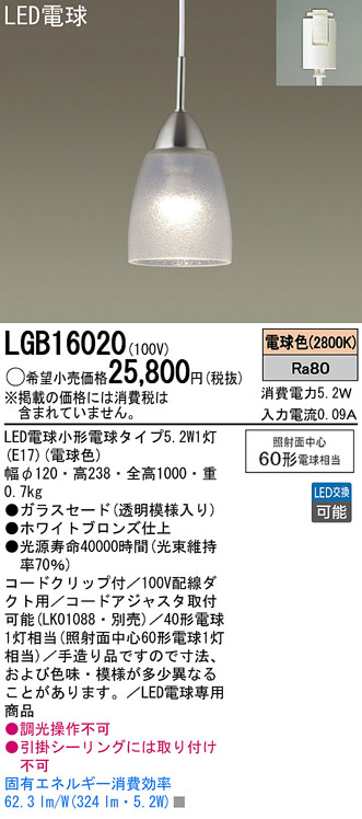 Panasonic LED ¥Ú¥ó¥À¥ó¥È¥é¥¤¥È LGB16020