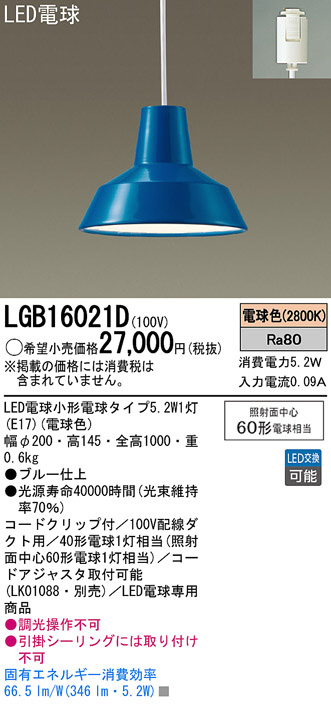 Panasonic LED ¥Ú¥ó¥À¥ó¥È¥é¥¤¥È LGB16021D