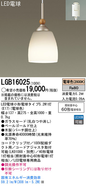 Panasonic LED ¥Ú¥ó¥À¥ó¥È¥é¥¤¥È LGB16025