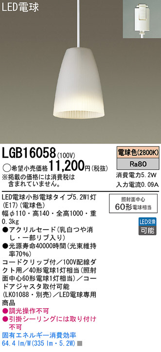 Panasonic LED ¥Ú¥ó¥À¥ó¥È¥é¥¤¥È LGB16058