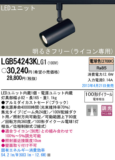 Panasonic LED ¥¹¥Ý¥Ã¥È¥é¥¤¥È LGB54243KLG1