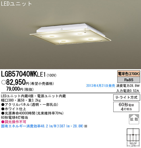 Panasonic LED ¥·¡¼¥ê¥ó¥° LGB57040WKLE1