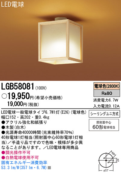 Panasonic LED ¥·¡¼¥ê¥ó¥° ÏÂÉ÷¾ÈÌÀ LGB58081