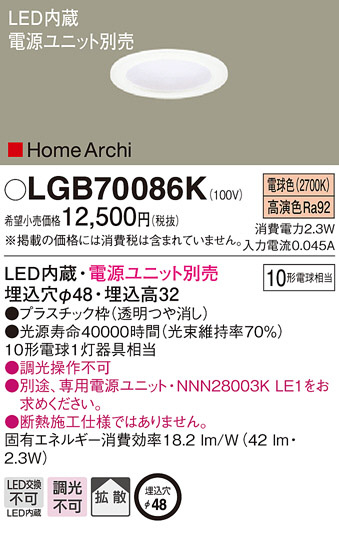 Panasonic ¥À¥¦¥ó¥é¥¤¥È LGB70086K