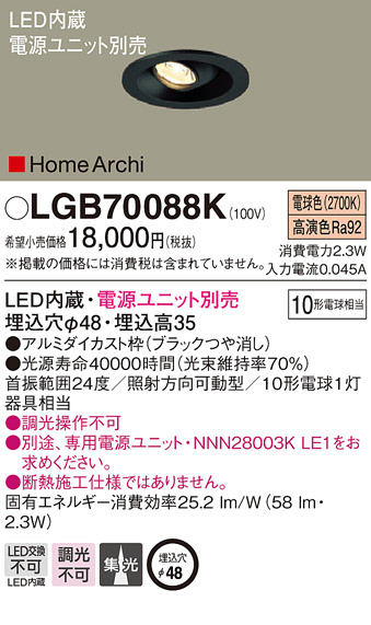 Panasonic ¥À¥¦¥ó¥é¥¤¥È LGB70088K