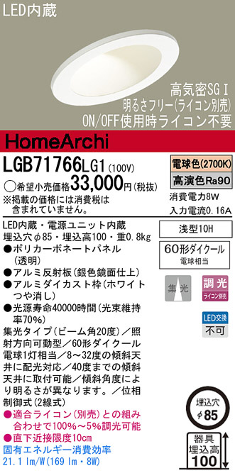 Panasonic LED ¥À¥¦¥ó¥é¥¤¥È LGB71766LG1