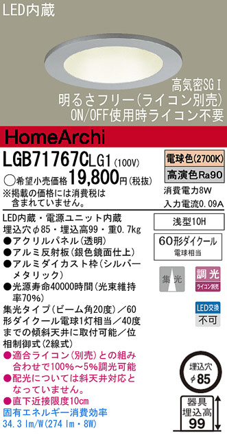 Panasonic LED ¥À¥¦¥ó¥é¥¤¥È LGB71767CLG1