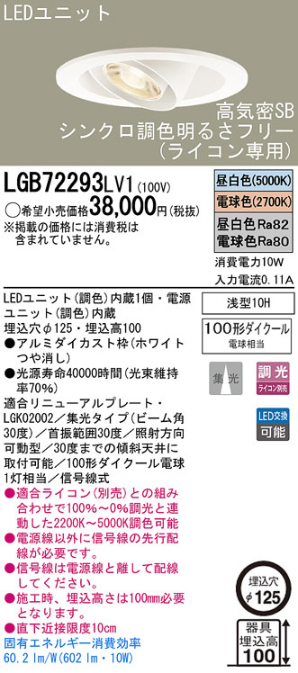 Panasonic LED ¥À¥¦¥ó¥é¥¤¥È LGB72293LV1