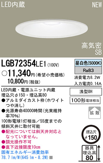 Panasonic LED ¥À¥¦¥ó¥é¥¤¥È LGB72354LE1