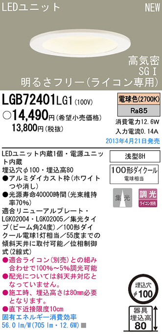 Panasonic LED ¥À¥¦¥ó¥é¥¤¥È LGB72401LG1