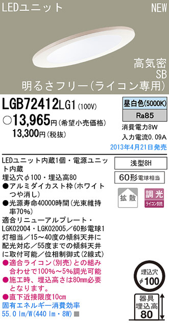 Panasonic LED ¥À¥¦¥ó¥é¥¤¥È LGB72412LG1